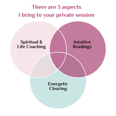 While every session with a client is different, my private sessions are different than a traditional “psychic reading” because my sessions are a blend of life coaching, spiritual guidance, intuitive insight, and energetic clearings to help you see your life’s path and how to navigate what’s next.